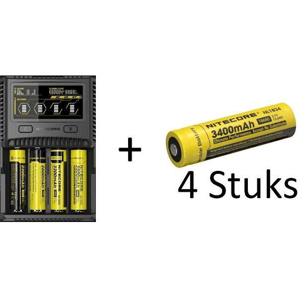 Nitecore Superbcharge SC4 EU 4 chanel Intelligent Fast charger for Li-ion batteries + 4 18650 3400 mah Batterijen