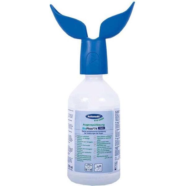 Actiomedic BIOPHOS74 pH-neutrale oogspoeling met een flaconinhoud van 500ml. Deze oogspoeling bestaat uit een speciale pH-neutrale vloeistof die snel en effectief de zuurgraad van ogen hersteld naar neutrale stand. De oogspoeling helpt bij het reinigen van je ogen bij contact met contact met chemicaliën of andere zuren/alkaliën. De flacon is voor eenmalig gebruik en heeft een speciale ergonomische oogschelp om beide ogen tegelijk te reinigen. Met deze flacon kan circa drie minuten gespoeld worden.