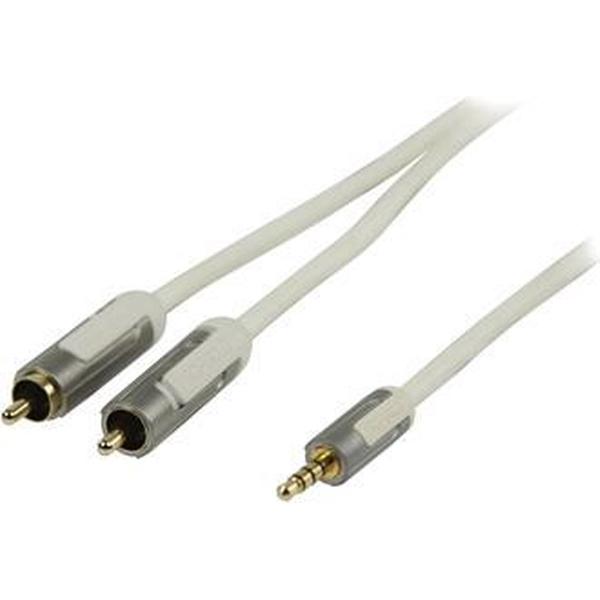 Profigold hoge kwaliteit slimline 3,5mm Jack - Tulp stereo 2RCA kabel wit - 0,20 meter