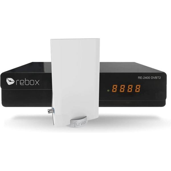 Rebox RE-2400 DVBT2 / DVB-T2 HEVC H.265 FTA 12 Volt TV ontvanger + Funke antenne DSC550