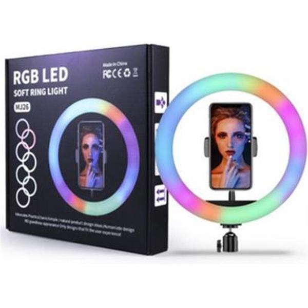 Ringlamp | RGB LED |Tik Tok Lamp | 8 Verschillende Kleuren | Make-up light | 26 cm Met statief hoog 150 cm| Voor vloggers, influencers, instagram posts, tiktok, product fotografie, maar ook voor kappers, gamers, live video's en nog veel meer |