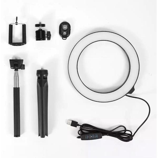 ▶ Inhoud Verpakking: 1x Ringlamp met USB kabel, 1x Telefoonhouder, 1x Bluetooth Shutter, 1x Statief, 1x Oplaadkabel, 1x Selfiestick, 1x Gebruiksaanwijzing
