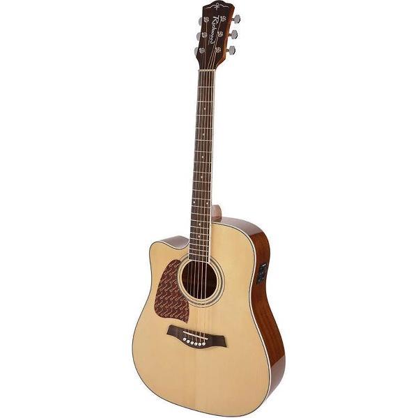 Linkshandige akoestische gitaar, dreadnought, cutaway, massief bovenblad, naturel, Fishman EQ.