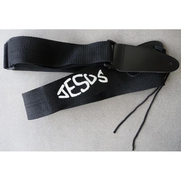 Gitaarband uit zwart nylon met "Jesus" (ichtus-vorm) opschrift, voor akoestische gitaar.