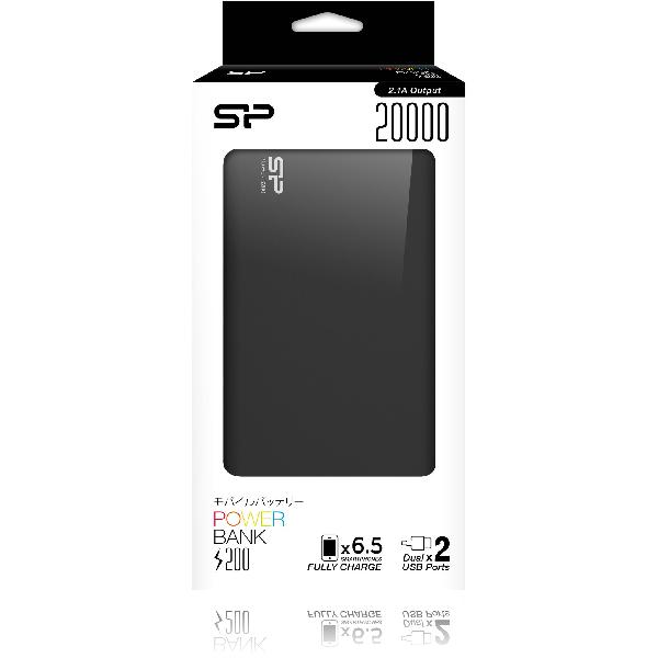 Silicon Power S200 Dual Output Powerbank 20000 mAh - Zwart