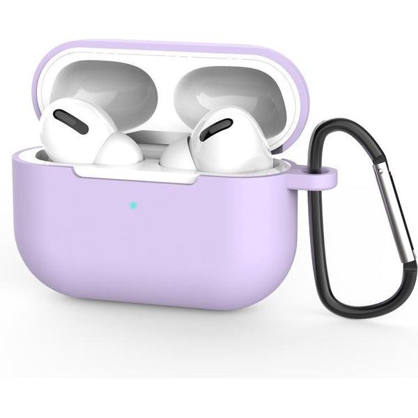Siliconen Case Apple AirPods Pro paars- AirPods hoesje lila inclusief haak - AirPods case