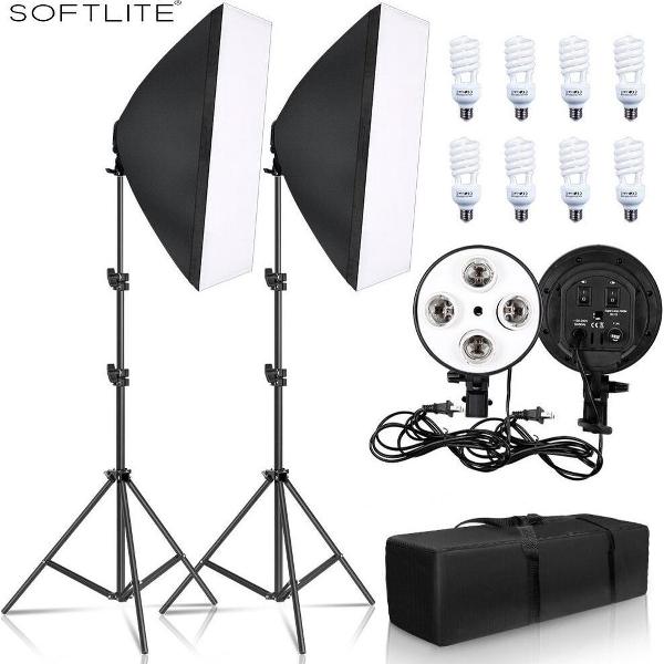Softbox Studiolampen Met Statieven - Diffuser - 8x 45 W CFL Lampen en Draagtas - Fotografie - Verlichting - Set | Fotostudio | Studiolamp | Draagbaar | Daglichtlampen | Daglicht | Lampen