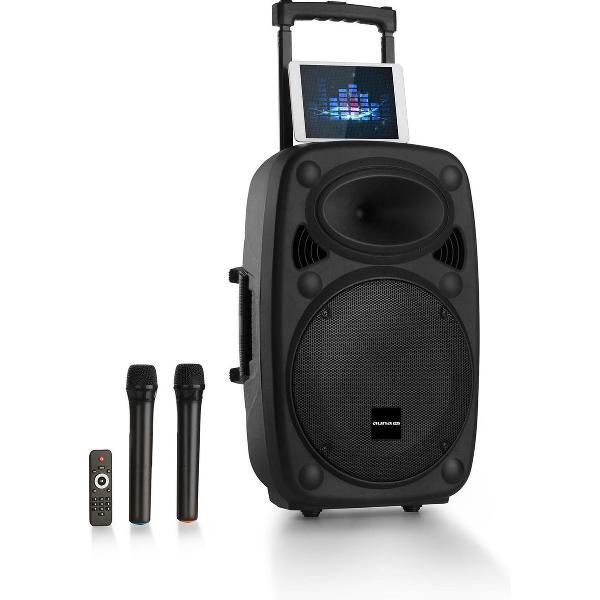 Let's get this party started!Second Generation! De auna Pro Streetstar 2.0 15 mobiele PA-installatie brengt de sound daarheen waar hij nodig is: midden in het hart van allerlei soorten evenementen en optredens - ongeacht of het nu een straat- of kinderfeest is, verenigings- of sportevenement, straatmuzikantenfeest of de zilveren bruiloft van een familielid is. Deze soundprofessional produceert voor circa 250 personen flink wat geluid.Let's get loud!De krachtige 15 (38 cm) subwoofer van de auna Pro Streetstar 2.0 15 mobiele PA-installatie verzorgt het publiek met drukkende bassen die onder de huid gaan, terwijl de tweeter voor een afgerond klankbeeld zorgt. Veelzijdige aansluitmogelijkheden leveren de gewenste sound: Via bluetooth vanaf playlists in de smartphone, tablet of MP3-speler, via USB poort en SD sleuf en per AUX line-in van andere audio-HiFi apparatuur zoals CD speler en stereo-installaties. Via de MIC ingang kan probleemloos een E-gitaar worden aangesloten. Voor warme karaoke-optredens, meeslepende zangoptredens en pittige presentaties zorgen de geïntegreerde, draadloze UHF microfoons: Onafhankelijk van kabels stralen ze met een storingsvrije overdracht, ook bij grote reikwijdtes - perfect om ieder publiek erbij te betrekken.Let's move!Voor mobiel gebruik tijdens evenementen is de auna Pro Streetstar 2.0 15 PA installatie prima uitgerust: De robuuste ABS behuizing kan tegen een stootje, terwijl ook lange DJ's de installatie door het verlengde 100 cm trolley-handvat comfortabel met zich mee kunnen nemen. Bijzonder handig zijn de uitwisselbare, draadloze UHF antennes. De krachtige 7,2 Ah accu kan zo'n 3 tot 5 uur continue ingezet worden, terwijl de accu-indicator ongewenste pauzes voorkomt. Natuurlijk kan de Streetstar 2.0 15 ook probleemloos op het stroomnet worden aangesloten. Zodat altijd duidelijk is wat gespeeld wordt, heeft de PA installatie een display met 4 regels voor de weergave van artiest en titel (ID3-tags). Middels de volwaardige afstandsbediening kan alles ook op afstand worden geregeld.Beschikbare varianten: Streetstar 2.0 15, Streetstar 2.0 12 (artikel 10031567)De Streetstar 2.0 15 mobiele PA installatie 15" subwoofer trolley BT USB/SD/MP3 AUX van Auna Pro is het ideale product om je fotografie naar een hoger niveau te tillen. Via FotografieVergelijk.nl kan je eenvoudig Streetstar 2.0 15 mobiele PA installatie 15" subwoofer trolley BT USB/SD/MP3 AUX bestellen bij de goedkoopste leverancier. Met een product van het merk Auna Pro verzeker je jezelf van goede kwaliteit.