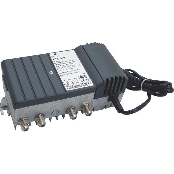Triax GHV 500-serie is een coaxiale appartementsdistributie-versterker met laag geluidsniveau, voor gebruik in kleinere MATV-distributienetwerken in woonhuizen met meerdere woningen.