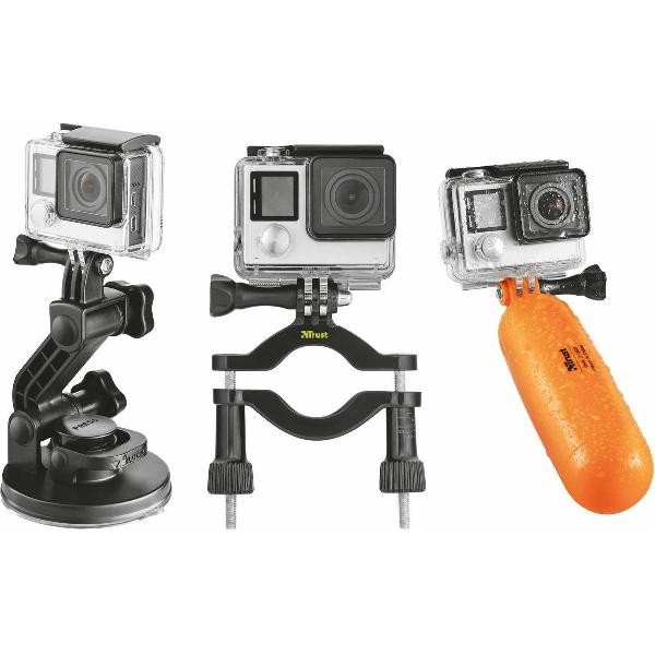 Dit 3 in 1 pakket bevat: een zuignap, drijvende greep en stuurbevestiging. Zo kun je jouw actiecamera gebruiken voor elke activiteit, zoals snorkelen, varen, mountainbiken of rijden. De drijvende greep blijft drijven op het wateroppervlak. De zuignap bevestig je bijvoorbeeld op het dashboard van je auto en de stuurbevestiging kun je op je mountainbike kwijt.