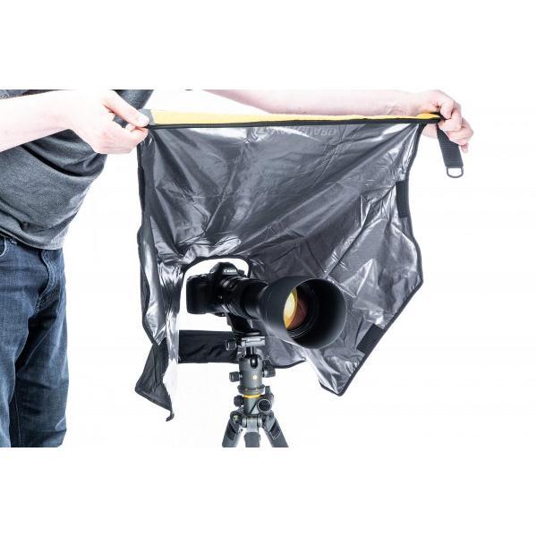 De ALTA RCL Regen Cape (Large) is een ingenieuze opname-in-de-regen oplossing, ontworpen om een DSLR met 400mm- of ultra tele-lens te beschermen. Deze multifunctionele hoes kan compact worden opgevouwen en past gemakkelijk in elke tas, zodat u nooit door een stortbui overvallen wordt zonder voldoende bescherming.