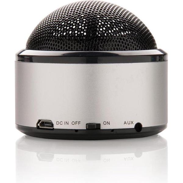 Draadloze speaker met 3W luidspreker en 350 mAh batterij. Door zijn slimme ontwerp zal de muziek in alle richtingen worden afgespeeld. Heeft een aluminium behuizing met metalen rooster. De onderkant van de luidspreker heeft rubberen strips voor een betere geluidskwaliteit en grip. Speeltijd tot drie uur en goede verbinding tot een afstand van tien meter. Inclusief micro USB-kabel om de luidspreker op te laden. Inclusief audio kabel om het apparaat te verbinden met je mobiele telefoon zonder draadloze verbinding. Compatibel met alle mobiele telefoons.