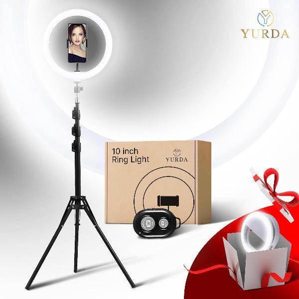 YURDA - Professionele ringlamp met statief - Inclusief telefoonhouder en draadloze afstandsbediening - Ringlamp - Verstelbare hoogte tot 180 cm - 3 kleuren en 11 lichtstanden - 360 graden draaibaar - Zwart