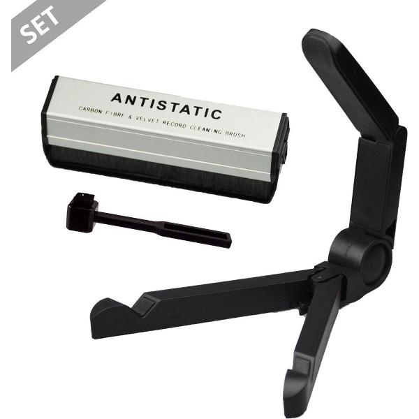 2 in 1 Platenborstel + Platenhouder - LP borstel - LP reinigingsset - Platenreiniger - LP houder - Platenrek - Naaldborstel - Vinyl brush - LP rek - Opbergsysteem - LP standaard - LP schoonmaakset - 3-Delig