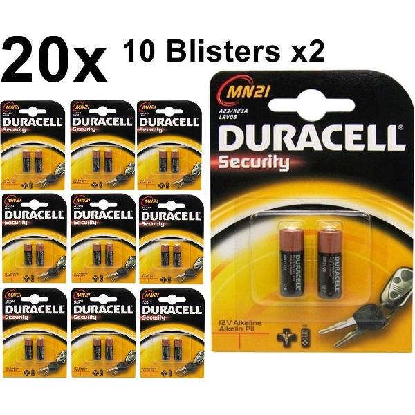 20 Stuks (10 Blisters a 2st) - Duracell A23 23A MN21 K23A Security 12V alkaline batterij