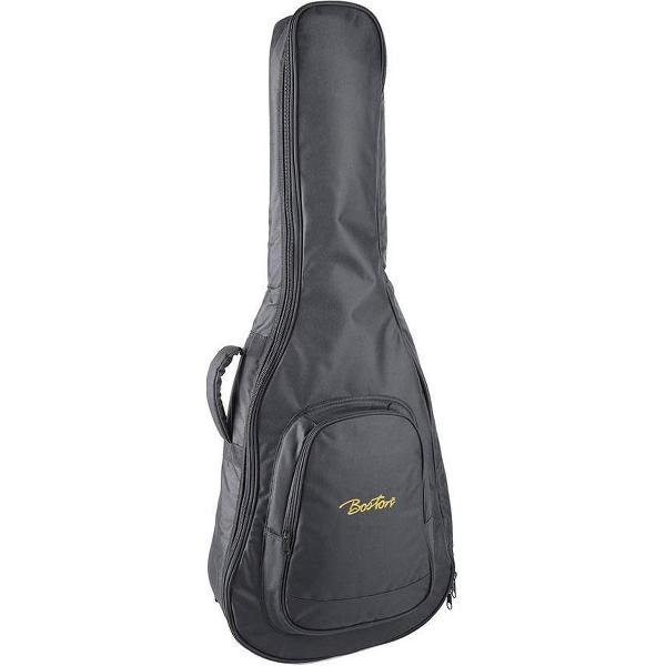 Boston gigbag voor akoestische gitaar, 6 mm. voering, nylon, 2 riemen, groot voorvak, zwart.