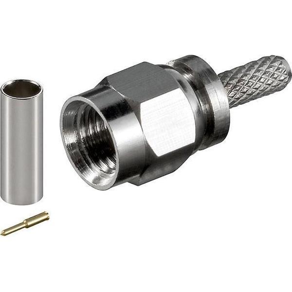 Deze mannelijke SMA krimp-connector kunt u met hulp van een krimptang bevestigen aan een 50 Ohm coax kabel met type RG58.SMA connector