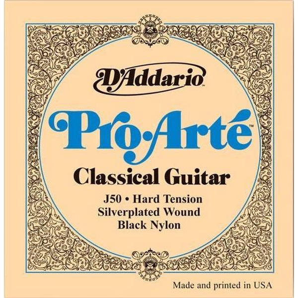 D'Addario J50 Set Pro Arte Hard Tension Silver Plated Black Nylon