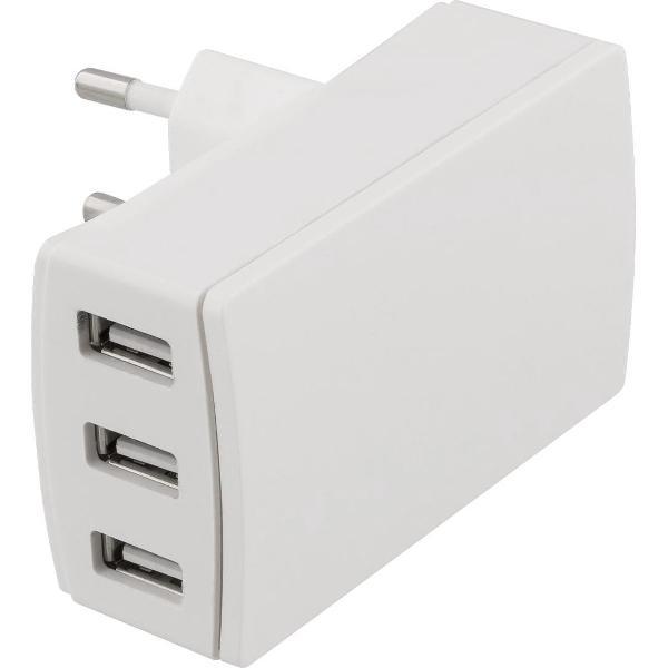 DELTACO USB-AC148 Wandlader, 240V tot 5V USB, 3,4A, 3xUSB-A poorten, wit