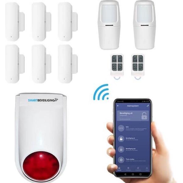 Met het alarmsysteem van Smartbeveiliging is uw huis slim beveiligd met moderne beveiligingstechnieken. Het alarmsysteem omvat een alles in één kit: Roodlicht sirene met ingebouwde alarmpaneel, 2x bewegingssensoren, 6x raam-/deursensoren en 2x meegeleverde afstandsbedieningen. Zo weet u wanneer verdachte activiteiten plaatsvinden in uw huis. Het alarmsysteem kan volledig naar wens ingesteld worden. Het alarmsysteem is bovendien compatibel met alle producten van Smart Beveiliging, Google Assistant en Amazon Alexa.