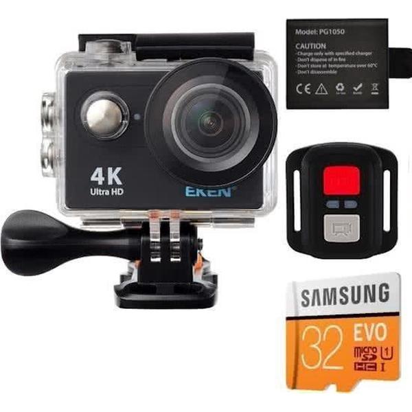 EKEN Action Camera H9R 4K Ultra HD + Afstandsbediening + Wifi + access & 12MP foto met OmniVision Chipsensor 4689 + Sandisk 32GB SD + Accu