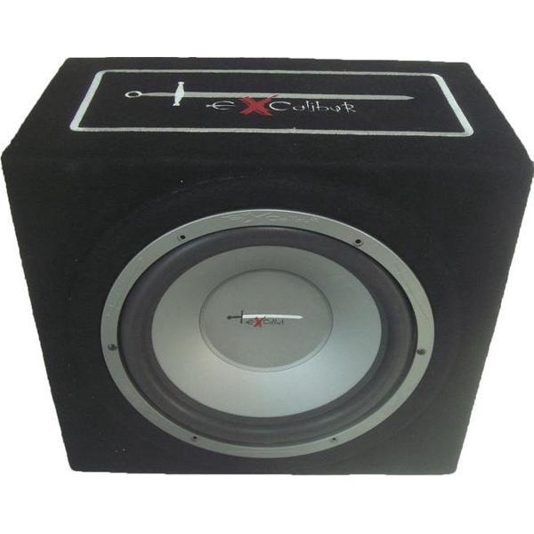 Excalibur 12 inch subwoofer in een gesloten kist. De woofer heeft een 2 inch hoog vermogen spoel met ventilatie. Geoptimaliseerd rendement subwoofer met cellulose coating. De subwoofer heeft een maximaal vermogen van 1000 Watt.