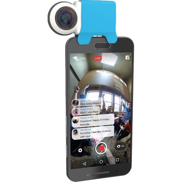 Leg echt alles vast! De Giroptic iO, een 360 clip-on camera voor Android smartphones, biedt de snelste en meest gebruikersvriendelijke manier om 360 graden foto's en video te maken en te delen die op dit moment beschikbaar is. De speciaal ontworpen Giroptic iO dubbele fish-eye lenzen, bieden real-time HD-beeldverwerking in een compact en handzaam mini formaat. Met één beweging zet je de Giroptic iO op je smartphone en je bent direct klaar voor het maken van indrukwekkende 360 graden foto's en (live) video's.