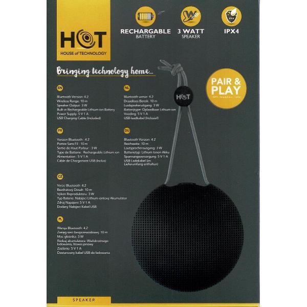Fijne 3 watt IPX4 speaker, met koord, inclusief USB-kabel en ingebouwde microfoon. Voor aansluiting op uw MP3, Smartphone of tablet!De HOT - Bluetooth IPX4 Speaker - Pair & Play - Zwart van House of technology is het ideale product om je fotografie naar een hoger niveau te tillen. Via FotografieVergelijk.nl kan je eenvoudig HOT - Bluetooth IPX4 Speaker - Pair & Play - Zwart bestellen bij de goedkoopste leverancier. Met een product van het merk House of technology verzeker je jezelf van goede kwaliteit.