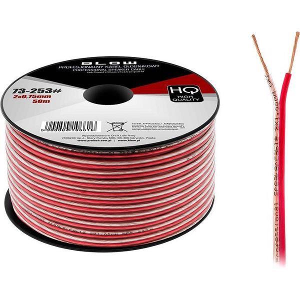 HQ luidsprekerkabel 2 x 0.75 mm transparant/rood op rol 50 meter