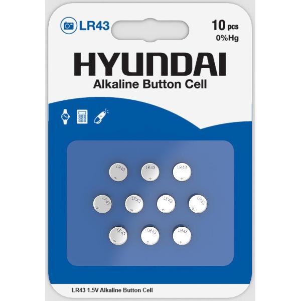 Hyundai - LR43 Knoopcel Batterij - Alkaline - 10 stuks