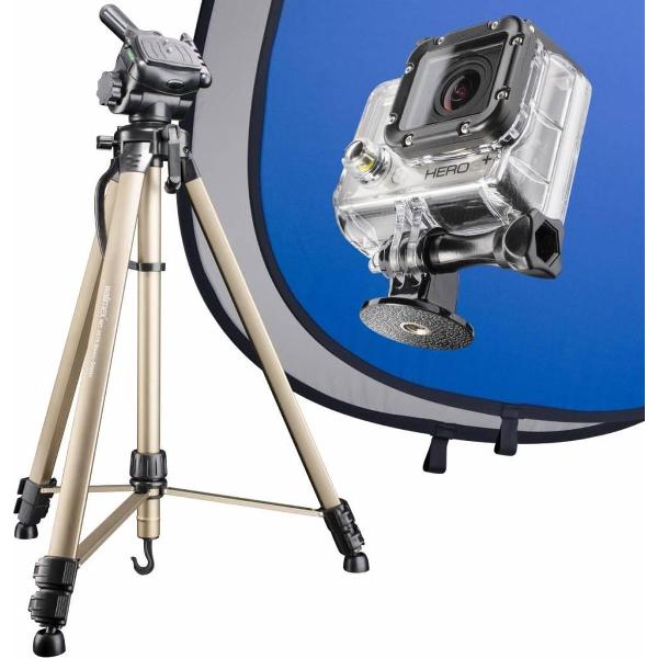 - 1x mantona Blue Screen voor GoPro, bestaande uit 1x Walimex pro Opvouwbare Achtergrond grijs / blauw, 150x200cm, incl. transportzak, 1 x statiefdraad adapter, 1 x schroef, 2 x moer, 1x Walimex WT-3570 Basis Statief, 165cm met geïntegreerde 3D Panhead en snelwisselplaat en handige draagtas