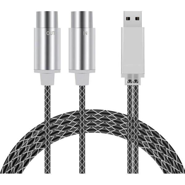 MIDI kabel IN+OUT USB converter voor Keyboards en andere instrumenten / Mac Windows / HaverCo