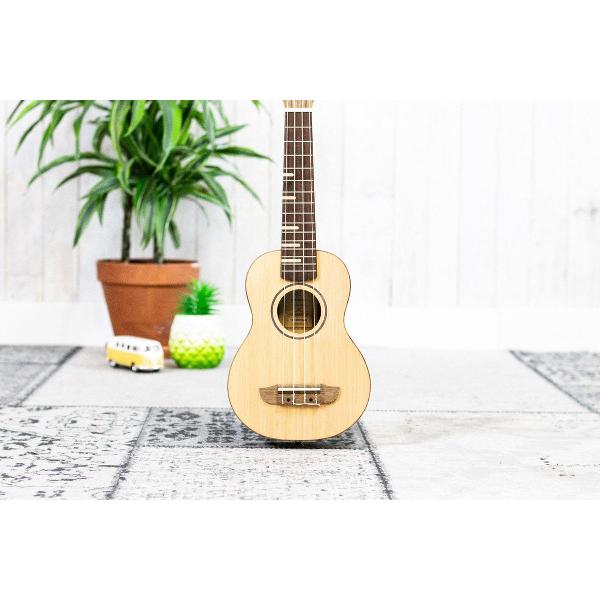De Ortega RUTI-SO Timber Series is een sopraan ukulele met een massief cederhouten top. Dit komt de warmte en de volheid van de klank zeer ten goede. De ukulele heeft een klassieke en minimalistische look en bar inlays op de hals. De RUTI-SO is mat gelakt afgewerkt. De Timber series ukuleles zijn bedoeld voor muzikanten die op zoek zijn naar een instrument met goede speel - en klankeigenschappen.