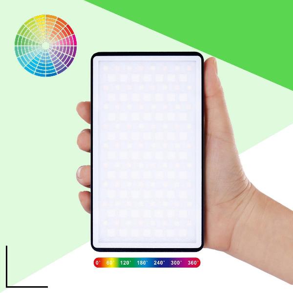 Dit RGB-licht stelt je in staat om meer dan 16 miljoen kleuren licht te creëren. En dat met een paar klikken op de knoppen aan de zijkant van het licht. Zo pas je de kleurtemperatuur, helderheid, verzadiging en tint van het licht volledig aan jouw wensen aan. Op het scherm aan de achterkant zie je precies de gekozen instellingen. Zo kun je direct met fotograferen of filmen aan de slag.