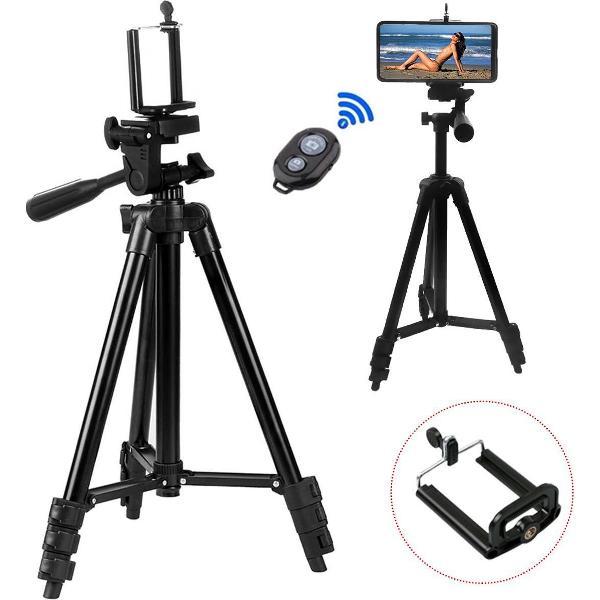 Smartphone Tripod Camera Statief 102 cm met Bluetooth Remote Shutter - Zwart