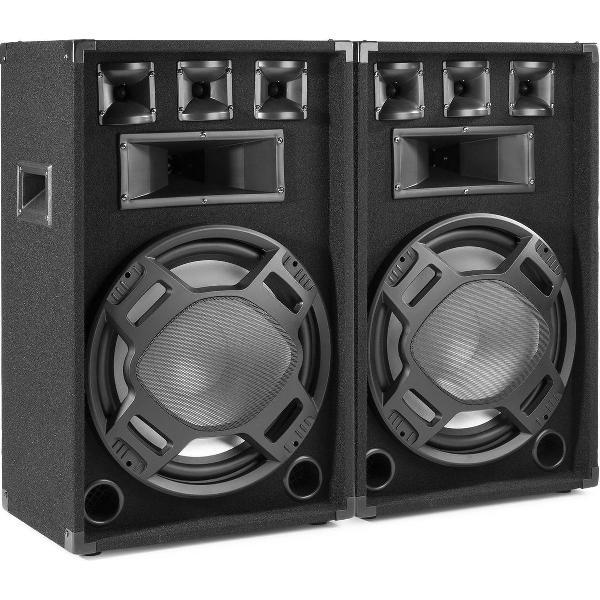 Speakerset - Set van 2 Fenton BS15 speakers met 15 woofer, ritmische disco LED's en 800W max. per speaker - Zwart