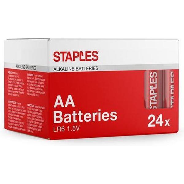 Staples AA-alkalinebatterijen 1,50 V, 2550 mAh (doos 24 stuks)