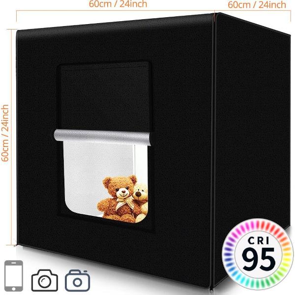 Travor Pro Fotostudio - Draagbaar - Foto Box - Hoge Kwaliteit - Profesioneel - met LED verlichting - Studiotent - 60x60 cm - Fototent - Opvouwbaar - Opnametent - 3 Achtergronden