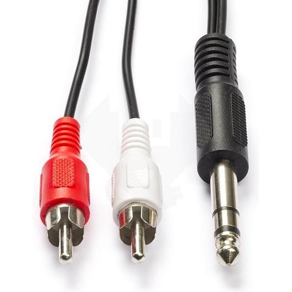 Jack 6.35 mm mannelijk naar 2x tulp mannelijk - Deze jack 6.35 naar tulp stereokabel is geschikt om bijvoorbeeld jouw keyboard of gitaar aan te sluiten op een speakerset of versterker. Dankzij de kabellengte van 2 meter kun je de apparatuur over een langere afstand met elkaar te verbinden.