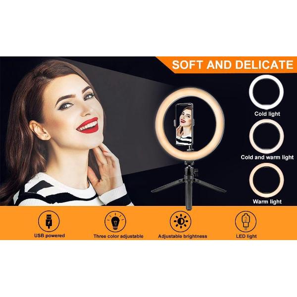Vizyon desktop LED Ring Light 26 cm/10 inch Ringlicht met statief en telefoonhouder, -cirkellicht voor zoomvergaderingen, draagbaar halo-bureaulampje voor iPhone Tiktok Streaming make-up Selfie Foto YouTube Video-opname