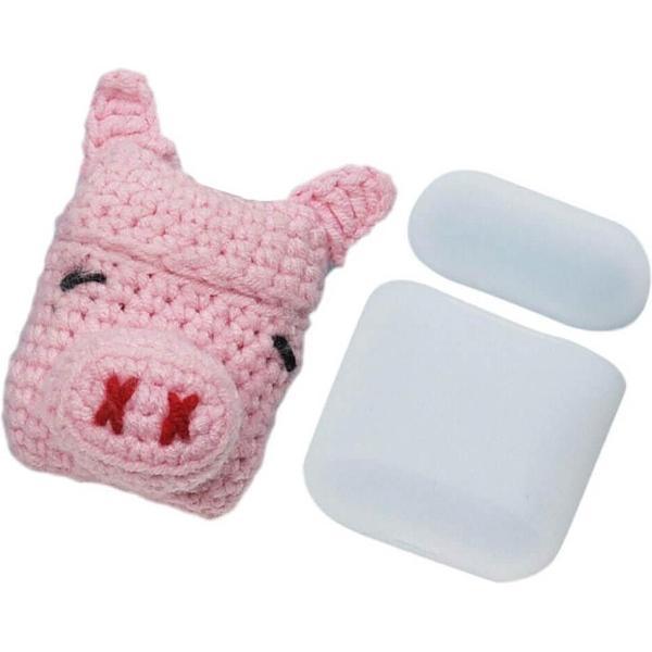 Wollen AirPods 1 en AirPods 2 Case Hoesje - Biggetje